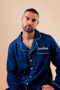 Our family Christmas mens pyjamas are the perfect set for you and your whole family. Our trousers have an elasticated waistband with an adjustable drawcord around the waist with pockets on both sides. Matched with a simple long sleeve button up top.