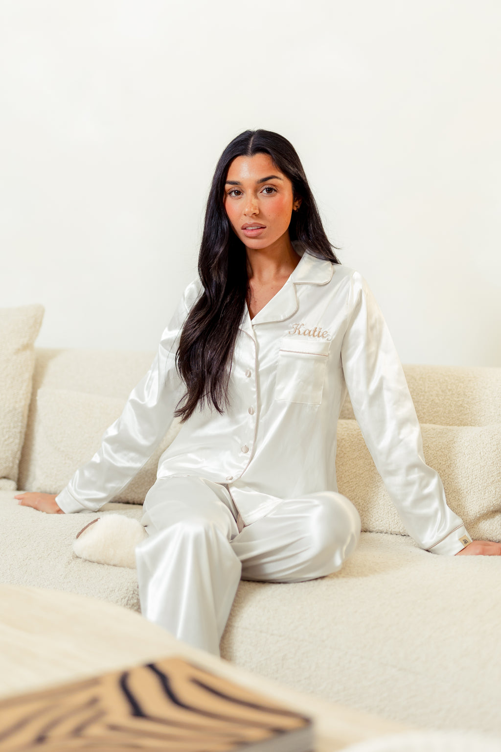 Welcome to our Lulabay ladies personalised pyjamas range- Indulge in comfort and style! Each set can be customised with your name, initials or date- adding a unique touch to your bedtime routine. Made from soft, breathable fabrics, our pyjamas offer a cosy fit for a restful night’s sleep or relaxed lounging at home. Available in a variety of stylish designs and sizes, they make the perfect personalised gift for yourself or a loved one. Elevate your sleepwear collection with our chic, personalised options! They make the perfect personalised gift for her! Match with one of beautiful personalised dressing gowns or slippers to make the perfect personalised gift for her!