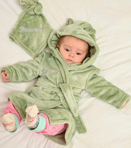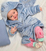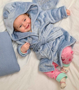 Let your little one look their best in this Babies personalised Dusky Pink hooded dressing gown. Made from super soft material, it features an elephant embroidery to the chest as well as detailing pom pom ears and a hood. Make it extra special by adding a personalised touch. Perfect for keeping your baby warm during the holidays. This item will be embroidered.