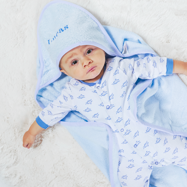 Treat your baby to luxurious comfort with the Babies Personalised Plain Hooded Towel/Robe. Crafted from 100% cotton for maximum softness, the hooded robe is designed to keep your little one cozy and dry after bath time. Plus, the unique embroidered personalisation makes it a one-of-a-kind treasure. This will be embroidered.