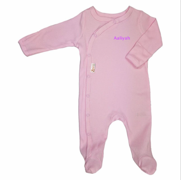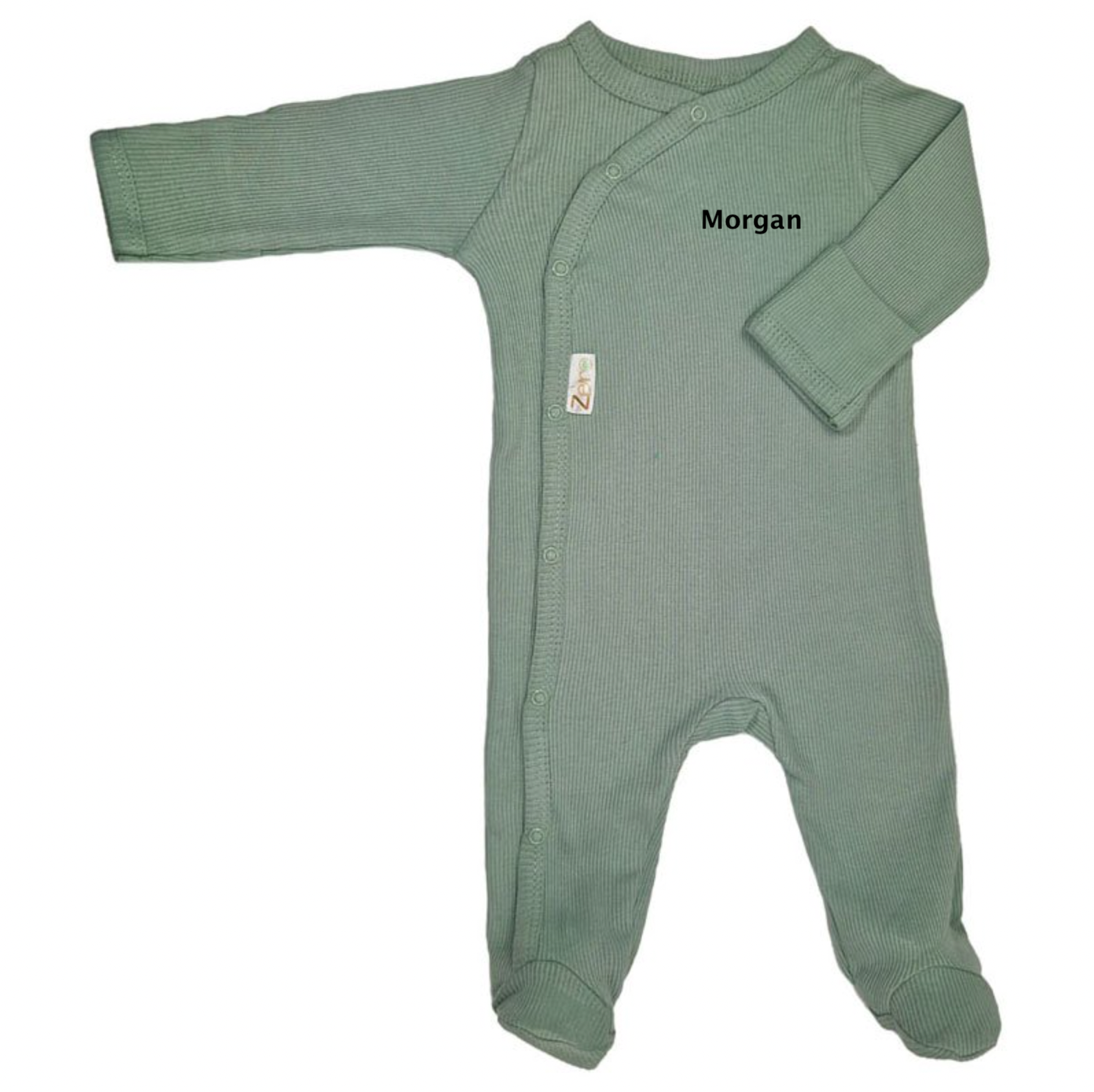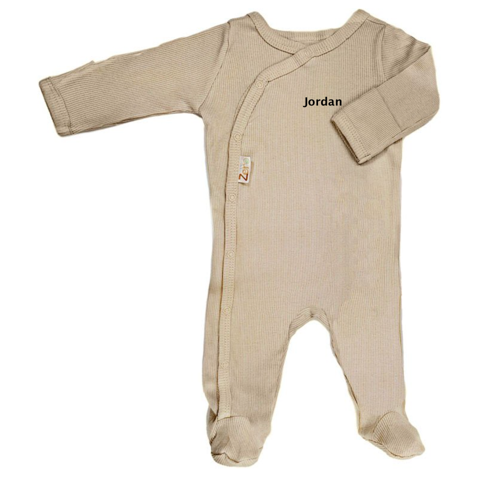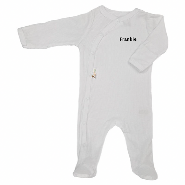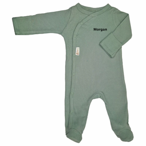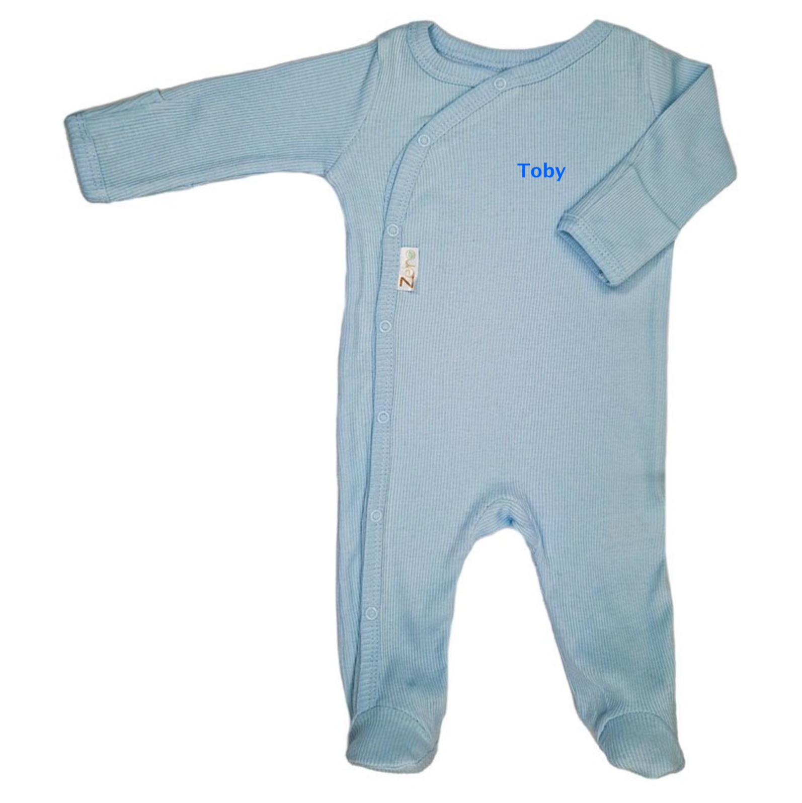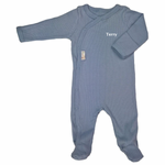 Our gorgeous sleepsuit can be personalised with any baby's name, perfect for your little prince of princess. This long sleeve ribbed sleepsuit has press stud fastening all the way down and long sleeves with feet.